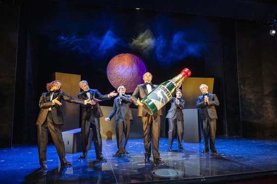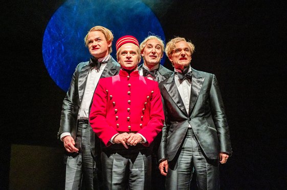 Das Fragment gebliebene Abschiedswerk, ein Wunder aus Bekenntnis-, Entwicklungs- und Schelmenroman, schwebt über vielen Böden, und der Titelheld wechselt ständig die Identität. Was also der Regisseur Folke Braband unternimmt, ist schlüssig und geht fein auf: Die vier Männer und zwei Frauen auf der Bühne sind allesamt Felix, treten aber mit punktgenauem Witz auch in die anderen Rollen. Ein amüsant-doppelbödiges Theatervergnügen!