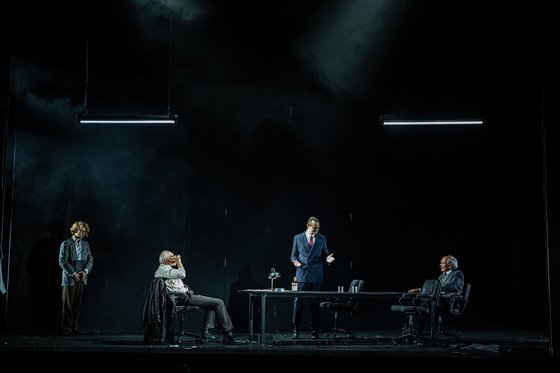 David Bösch lässt die Figuren nicht lange fackeln. Schnell ziehen sie den Revolver, der eigentlich unentdeckt bleiben sollte. Aber das Wesentliche sind die psychologischen Entwicklungen, die Fußangeln des eigenen Denkens. Im Gegensatz zum nebeligen Sfumato, das die Bühne überzieht, wirf diese Regie mit einem sagenhaft akkuraten Ensemble scharfes Licht auf die Brüche scheinbar unverrückbarer Überzeugungen.