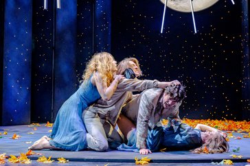 Juliette Larat (Hermia), Julian Valerio Rehrl (Lysander), Tobias Reinthaller (Demetrius), Melanie Hackl (Helena)