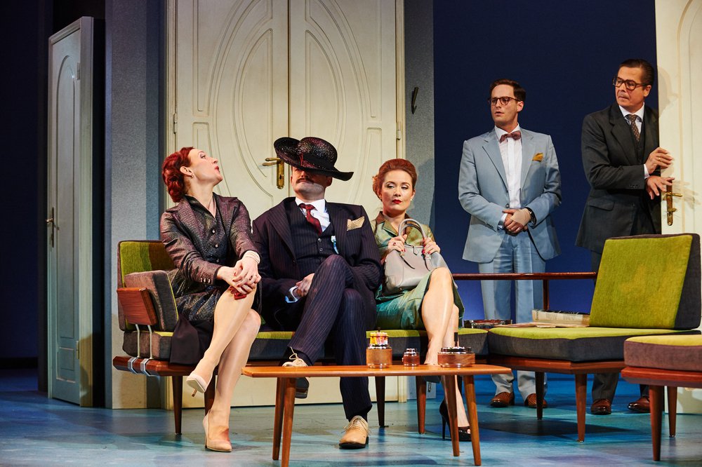 In der temporeichen Regie von Josef E. Köpplinger und in der sprachbrillanten Übersetzung von Elfriede Jelinek ist die turbulente Verwechslungskomödie voller List, Lügen und Affären in den 1960er Jahren - vor der sexuellen Revolution - angesiedelt.