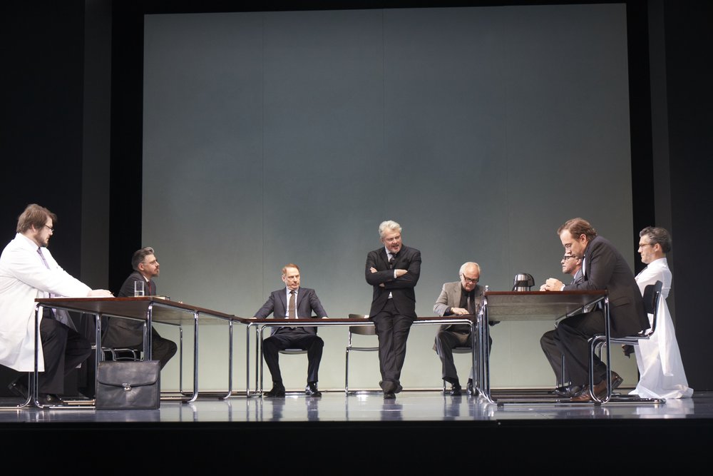 Höhepunkt der Inszenierung ist jene Szene, in welcher Bernhardi eine Sitzung einberuft, welche die Gefährlichkeit der Mitläufer offenlegt. Ebenwald betreibt die Absetzung von Bernhardi, auf seiner Seite ist Professor Filitz. Christian Nickel ist als stocksteifer Formalist, dem der soziale Status alles bedeutet, hochkomisch. Mit neurotischer Genauigkeit bringt er sein Sakko in Form, während es Bernhardi an den Kragen geht. Dass am Ende Bernhardis Verbündete überstimmt werden und dieser seinen Rücktritt beschließt, ist letztlich das Ergebnis der Feigheit der Opportunisten.