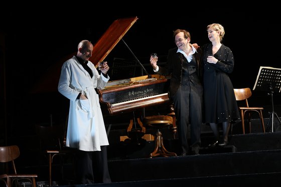 Günter Franzmeier als alter und Martin Vischer als junger Zemlinsky spielen, jeder auf seine Art, einen sympathischen Kerl, der sich nicht so leicht unterkriegen lässt. Markus Kofler gibt Arnold Schönberg als tiefenentspannten Wiener Strizzi.